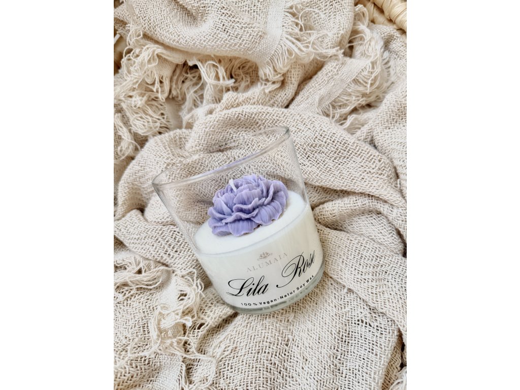 Sójová sviečka Lila Rose prináša jemnú, elegantnú vôňu fialových ruží, ktorá okamžite premení každý interiér na pokojné a harmonické miesto. Ručne odlievaná do číreho skla a doplnená o dekoratívny kvet, pôsobí ako luxusný doplnok aj ako originálny darček.